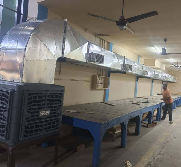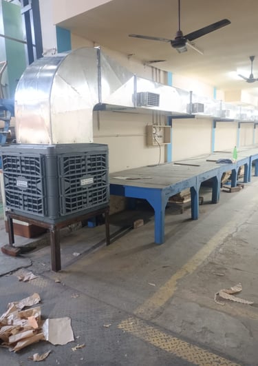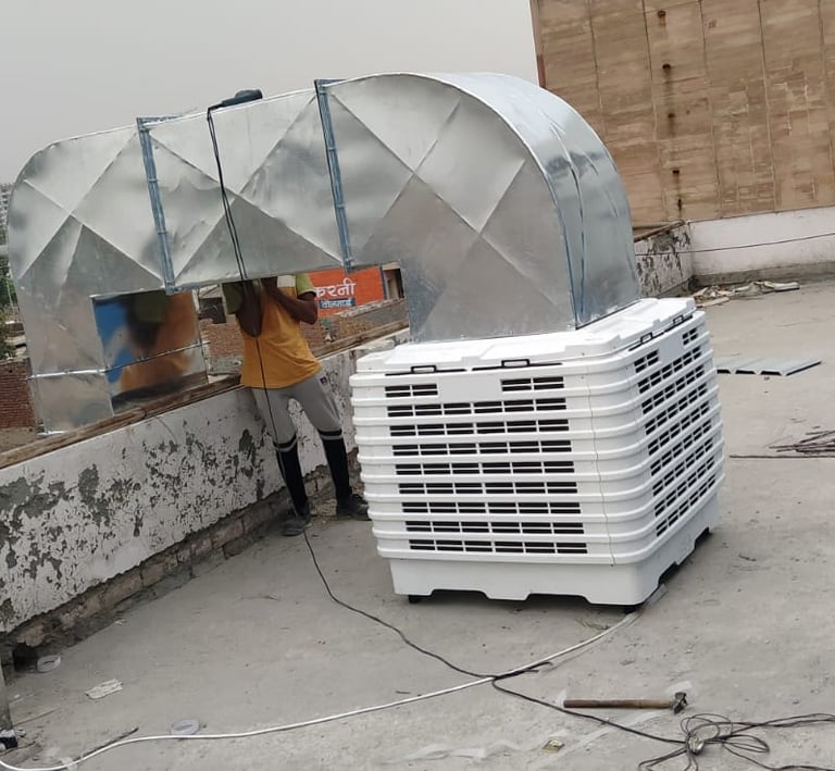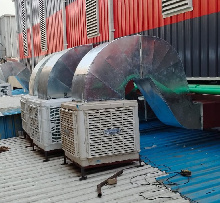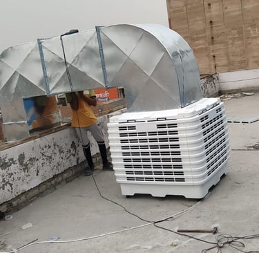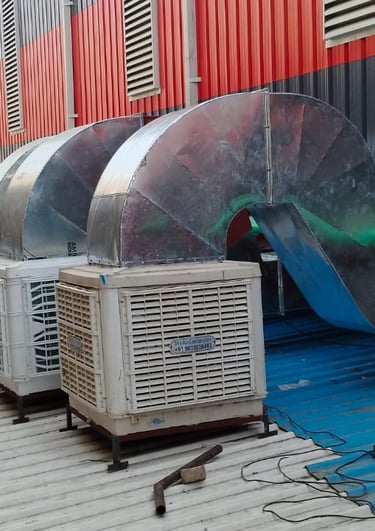 We specialize in high-capacity evaporative air coolers, providing energy-efficient and eco-friendly cooling solutions for factories, warehouses, and outdoor areas, ensuring comfort and productivity in large environments.